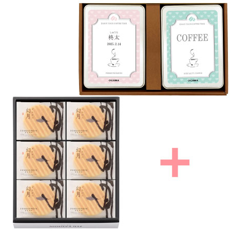 • 京都小川珈琲 名入れスペシャルティ&プレミアムブレンドコーヒーギフトセットとZENKASHOIN 幻月12枚入詰合せ_補足画像01