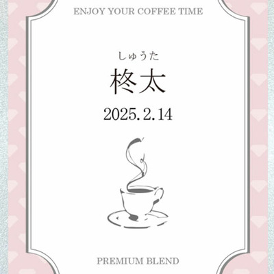 コーヒー缶のラベルにお子さまのお名前と生年月日をお入れします。