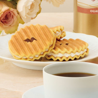 セットのZENKASHOINの「幻月」は、さっくり焼いた堅焼きワッフルにヴァニラ風味のクリームをはさんだ和洋折衷の洋風煎餅です。