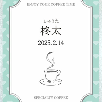 コーヒー缶のラベルにお子さまのお名前と生年月日をお入れします。