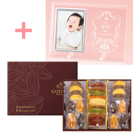 【旬ギフト】名入れフォトフレーム(小)とゴディバ パティスリーアソートメント21個入