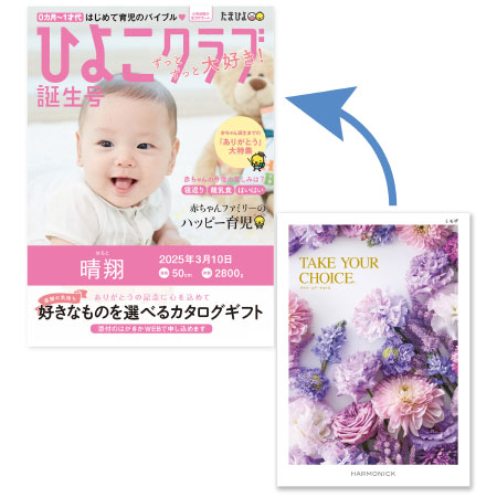• 【旬ギフト】「ひよこクラブ」なりきり表紙 写真&名入れカタログギフト テイク・ユア・チョイス ミモザ_補足画像02