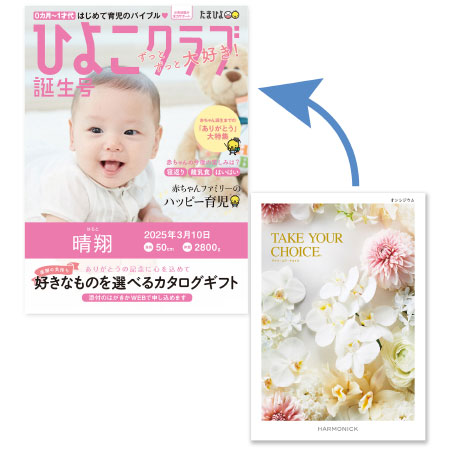 • 【旬ギフト】「ひよこクラブ」なりきり表紙 写真&名入れカタログギフト テイク・ユア・チョイス オンシジウム_補足画像01
