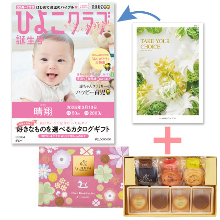 • 【旬ギフト】「ひよこクラブ」なりきり表紙 写真&名入れカタログ テイクユアチョイス ポピーとゴディバ ドームバーム&クッキー11個入