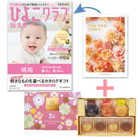 • 【旬ギフト】「ひよこクラブ」なりきり表紙 写真&名入れカタログ テイクユアチョイス セントポーリアとゴディバ ドームバーム&クッキー11個入_補足画像01