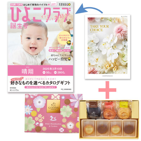たまひよだけのスペシャルなカタログギフトを、「ゴディバ たまひよオリジナルドームバームクーヘン&クッキー」とのセットでお届けします。