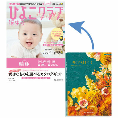 「ひよこクラブ」なりきり表紙でお子さまの写真をお披露目!たまひよだけのスペシャルなカタログギフトを資生堂パーラーの花椿ビスケットとのセットでお届けします。