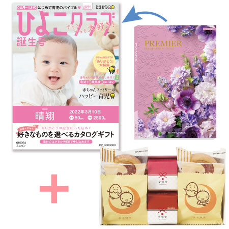 「ひよこクラブ」なりきり表紙 写真&名入れカタログギフト プルミエ ミニョンと文明堂 お福分けカステラ アソートセットA