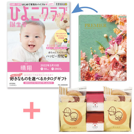 「ひよこクラブ」なりきり表紙 写真&名入れカタログギフト プルミエ シャルマンと文明堂 お福分けカステラ アソートセットA