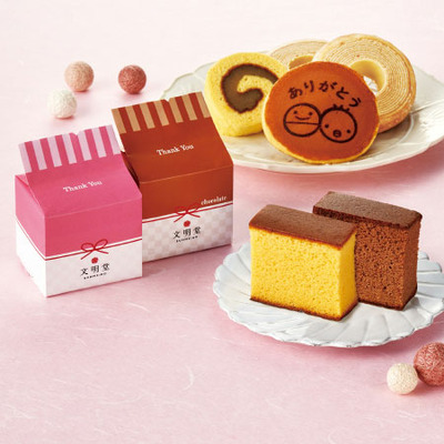• 「ひよこクラブ」なりきり表紙 写真&名入れカタログギフト プルミエ シャルマンと文明堂 お福分けカステラ アソートセットA_補足画像01