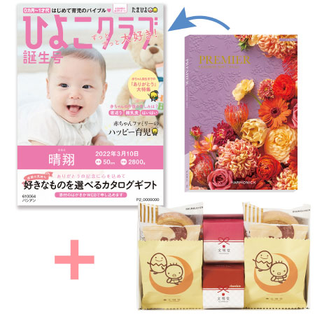 「ひよこクラブ」なりきり表紙 写真&名入れカタログギフト プルミエ パシアンと文明堂 お福分けカステラ アソートセットA