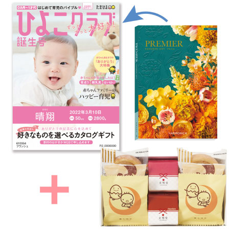 • 「ひよこクラブ」なりきり表紙 写真&名入れカタログギフト プルミエ ブランシェと文明堂 お福分けカステラ アソートセットA