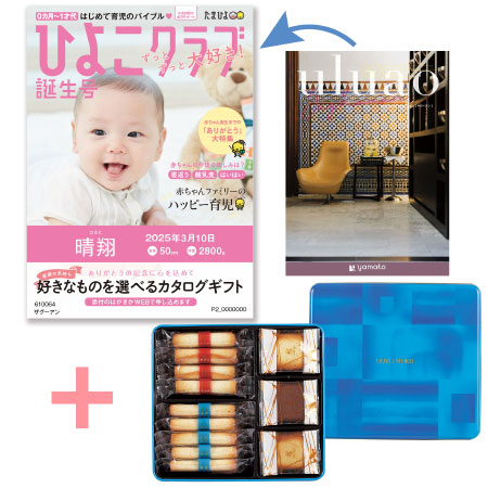 「ひよこクラブ」なりきり表紙でお子さまの写真をお披露目!たまひよだけのスペシャルなカタログギフトをヨックモックのギフトセットとともにお届けします。