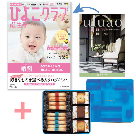 • 「ひよこクラブ」なりきり表紙 写真&名入れカタログ ウルアオ アルシノエとヨックモック ギフトセットA
