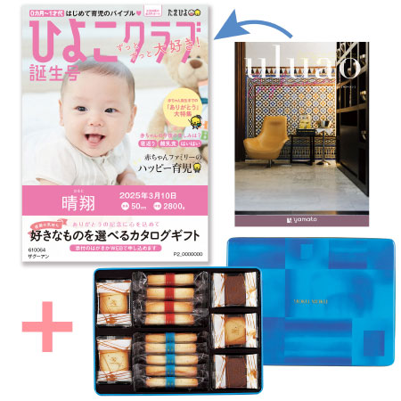 「ひよこクラブ」なりきり表紙でお子さまの写真をお披露目!たまひよだけのスペシャルなカタログギフトをヨックモックのギフトセットとともにお届けします。