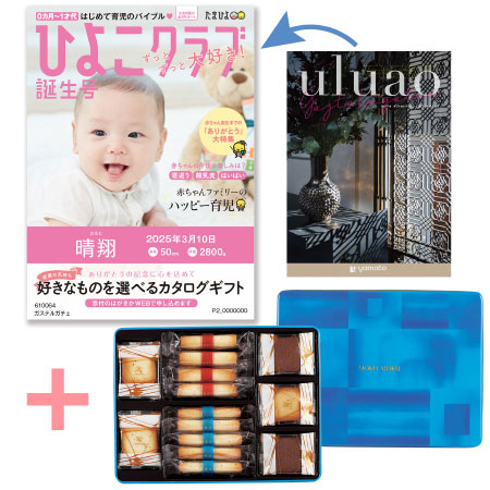 • 「ひよこクラブ」なりきり表紙 写真&名入れカタログ ウルアオ ガステルガチェとヨックモック ギフトセットB_