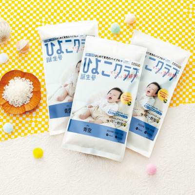 お米の袋は、一つひとつにお子さまの写真とお名前、生年月日、出生時の身長と体重を入れた「ひよこクラブ」なりきり表紙のデザイン。ご親戚に配ったり、ご友人の集まりなどでお子さまのお披露目をするときにもぴったりです。