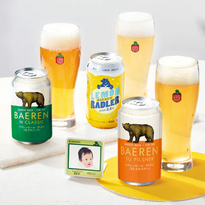 ヨーロッパ伝統の製法でつくられた本場スタイルのビールとタンブラーのセット。お子さまの写真とお名前、生年月日をお入れしたカードを、箱の中に入れてお届けします。