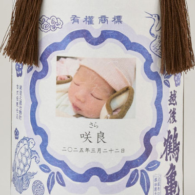 酒造好適米「山田錦」を100%使用した純米大吟醸酒。口に含んだ瞬間の華やかで芳醇な香りと、お米の旨みの広がりをお楽しみください。ラベルに、お子さまの写真とお名前、生年月日をお入れします。