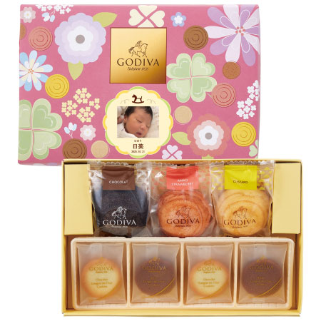 たまひよオリジナルのゴディバの焼き菓子詰め合わせに、お子さまの写真を入れて、さらに特別感UP!