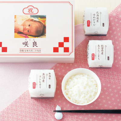 ■内容:米300g×6(新潟県魚沼産コシヒカリ・北海道産ゆめぴりか・秋田県産あきたこまち×各2)、カタログギフト×1