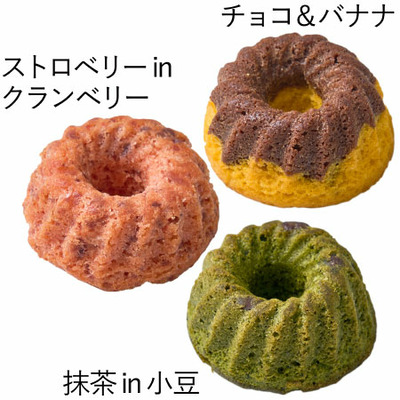 ■内容:りんごジュース(濃縮還元)180ml×3、清見オレンジジュース(濃縮還元)180ml×2、ドライフルーツ×3(マンゴー・キウイ・ピースみかん×各1)、パウンドケーキ×2(いちご×アールグレイ・オレンジピール×チョコ×各1)、クグロフ×3(ストロベリーinクランベリー・チョコ&バナナ・抹茶in小豆×各1)