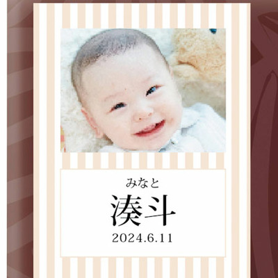 ラベルにお子さまの写真とお名前、生年月日をお入れします。