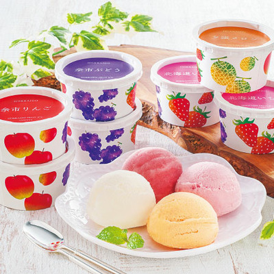 北海道余市産のりんごやぶどう、北海道いちご、夕張メロンを使ってつくられたアイスは、しっかりと果実が感じられ、子どもから大人まで幅広くお楽しみいただけます。