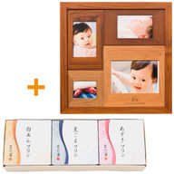 名入れ木製ダブルフォトフレームとたかはた果樹園 ゼリーギフト9個入り