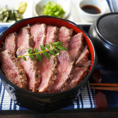 甘口のタレと〆の出汁を添えた濃厚な旨みの和牛肉のひつまぶし。