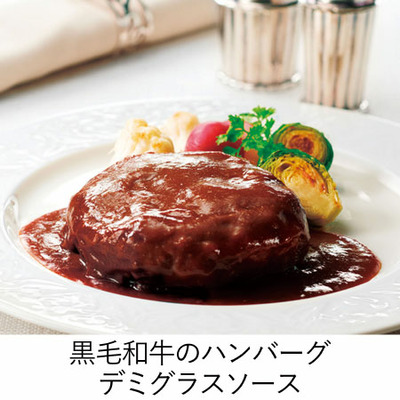 ■黒毛和牛のハンバーグデミグラスソース ひとつずつていねいに仕上げたハンバーグに、帝国ホテル伝統のデミグラスソースを合わせた逸品です。一口ごとに感じられる深い味わいをお楽しみください。