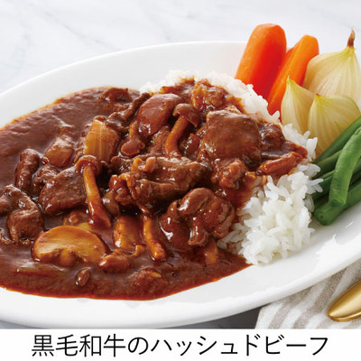 ■黒毛和牛のハッシュドビーフ 焙焼した国産牛すじと香味野菜をじっくりと煮込んだデミグラスソースをベースに、ソテーした黒毛和牛のうまみを加えたハッシュドビーフです。黒毛和牛とデミグラスソースの上質な味わいをお楽しみください。