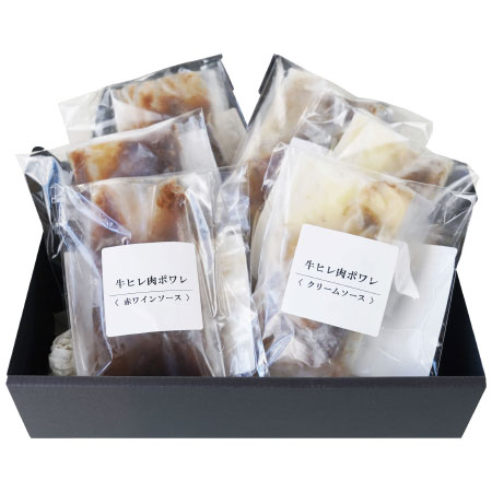 ■内容:牛ヒレ肉ポワレの赤ワインソース105g×3、牛ヒレ肉ポワレのクリームソース120g×3