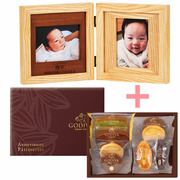 【旬ギフト】名入れ木製ダブルフォトフレームとゴディバ パティスリーアソートメント21個入