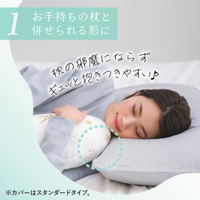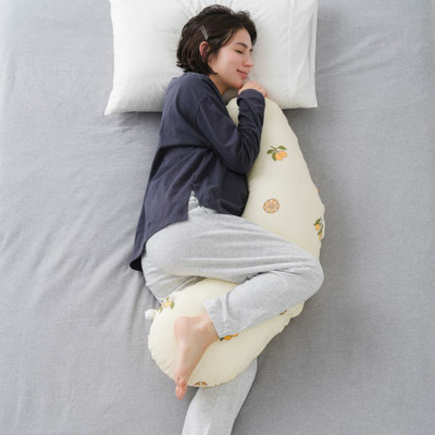 下半身の安定感はロングタイプと変わらず、おなかまわりをしっかり支えつつ、上半身側は枕といっしょに使いやすい、端が細めのデザインに。産後には授乳クッションやおすわりサポートとしても使えます。