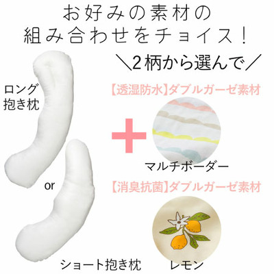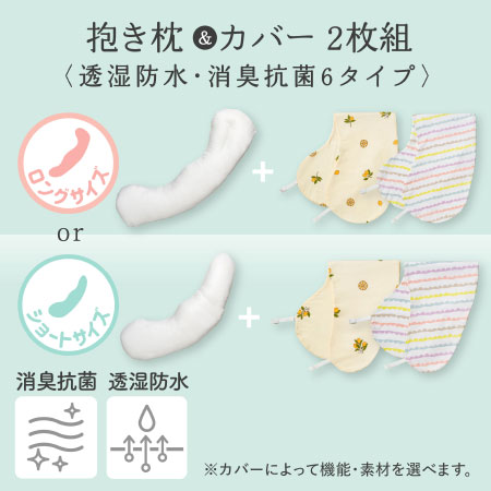 【替えカバー付き】授乳クッションになる妊婦さんの抱き枕(透湿防水・消臭抗菌)_【ロング】消臭抗菌レモン2枚