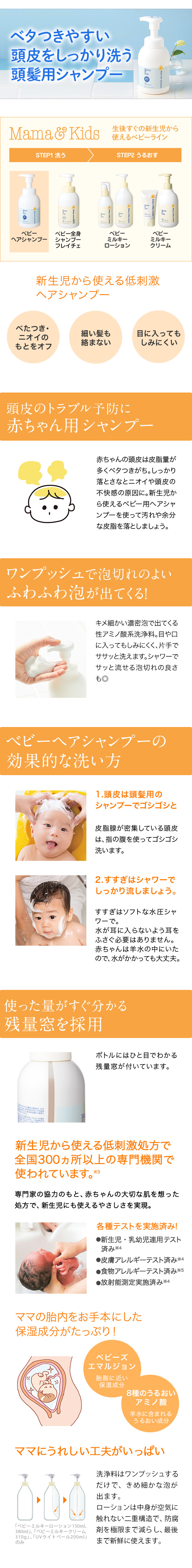 リンス成分不使用なのに、細くてからまりやすい赤ちゃんの髪をしっとりサラサラに整えます。